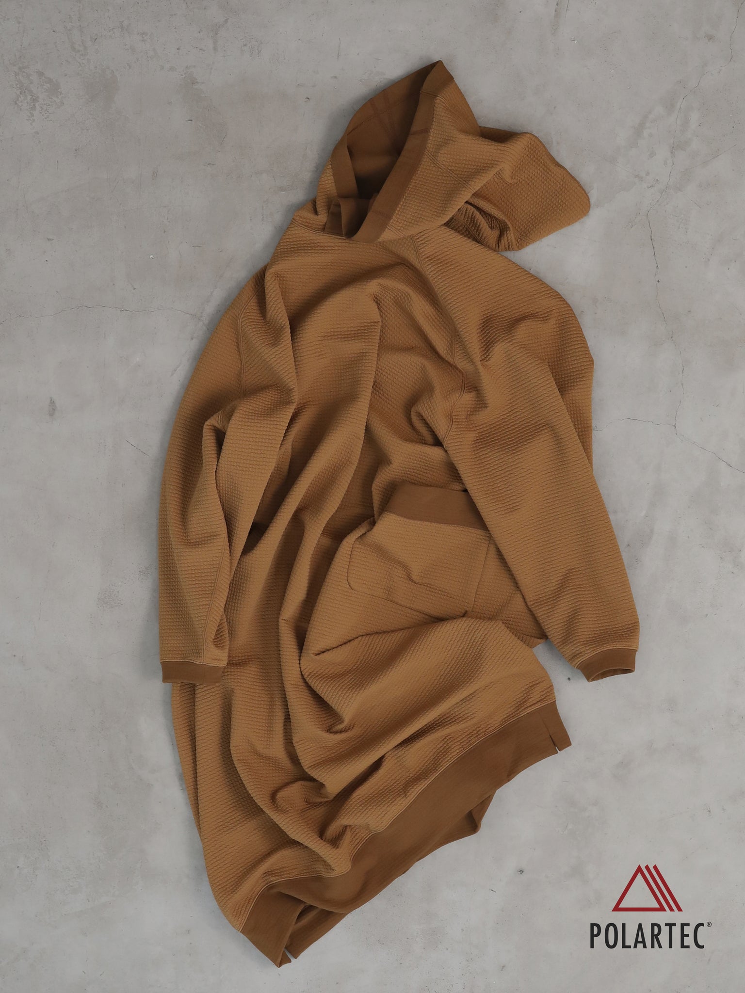 伸びが少なく型崩れしにくい POLARTEC® を、あえて“着倒した部屋着”のムードへ。