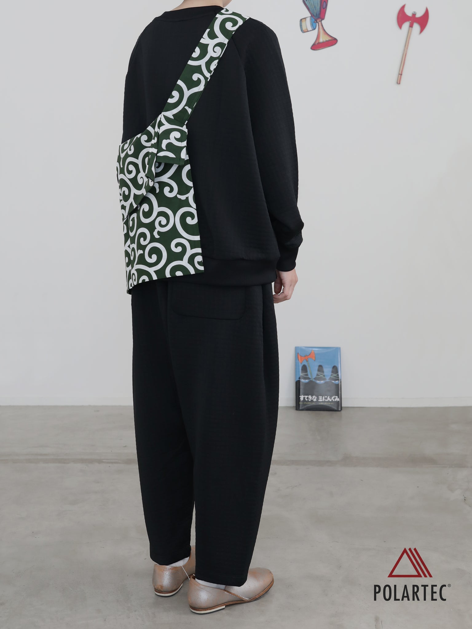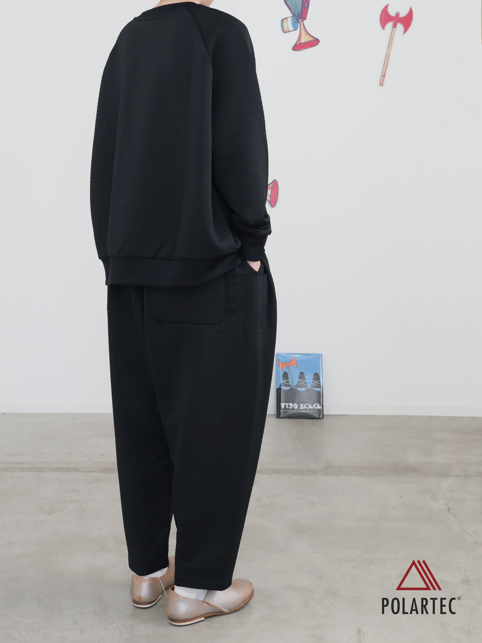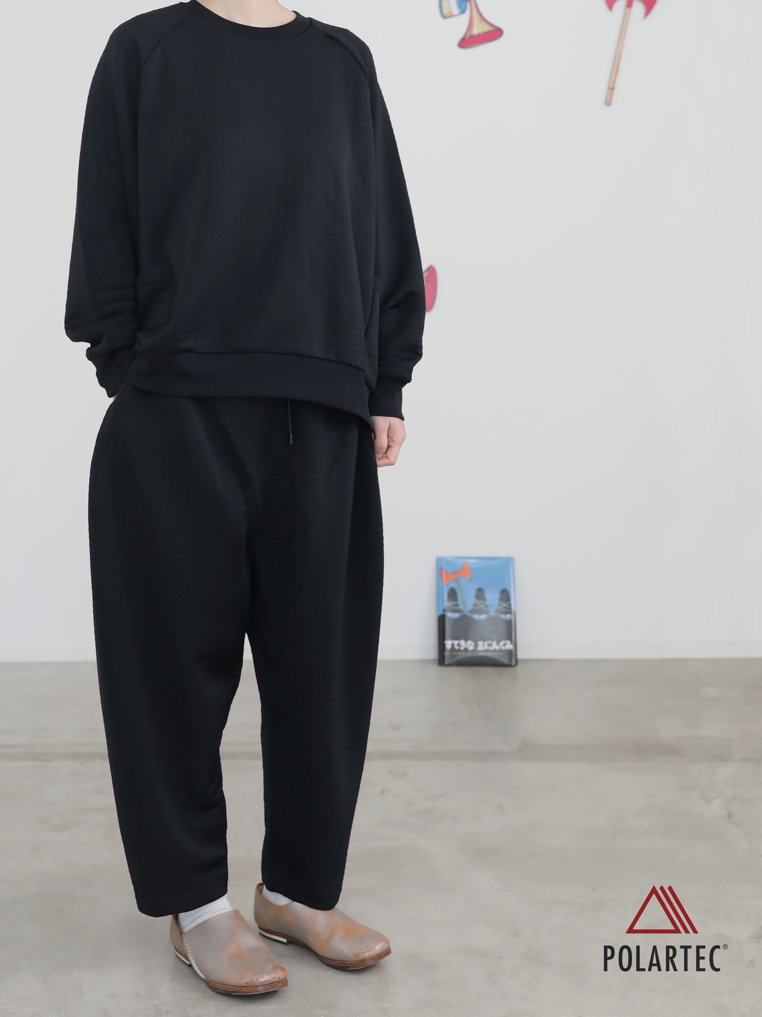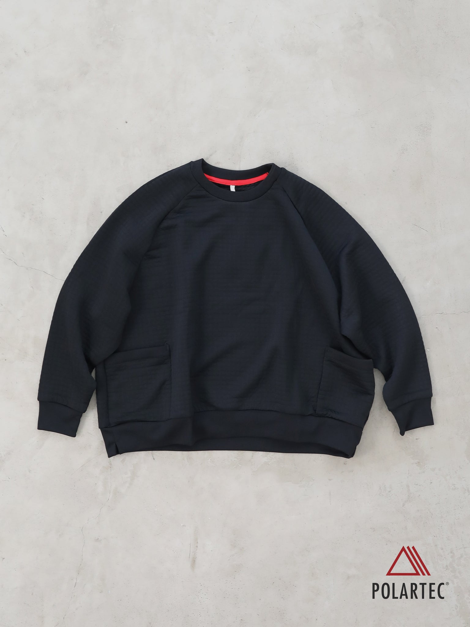 襟元ダーツと袖付けで生まれる柔らかな丸みをおびたラグラン設計のクルー。後ろ袖下にマチを配し、脇下のみ POLARTEC® Power Stretch Pro™ に切替えて動きを補助。身頃には POLARTEC® Power Air™ を採用し、軽さと保温性を両立。