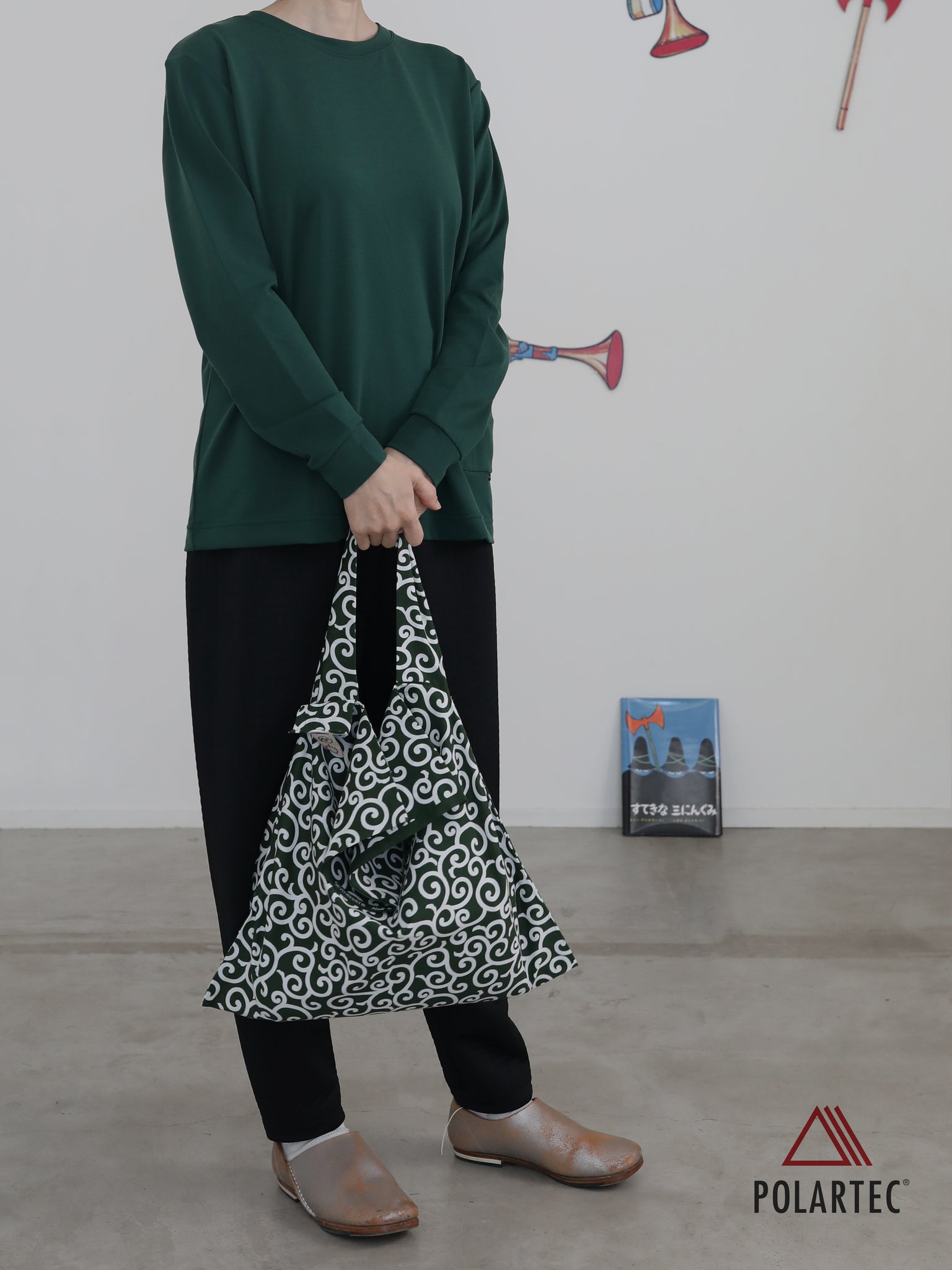 肩線の縫い代をカバーするバインダーを後ろ襟ぐりまで回し、反対側の肩線へとつなげる構造。弧の力で縫い代を折り込み、見た目も着心地もフラットに仕上げた〈ハーフロールネック〉シリーズ。レギュラーフィットのロングスリーブは、1枚でもインナーでも活躍します。
