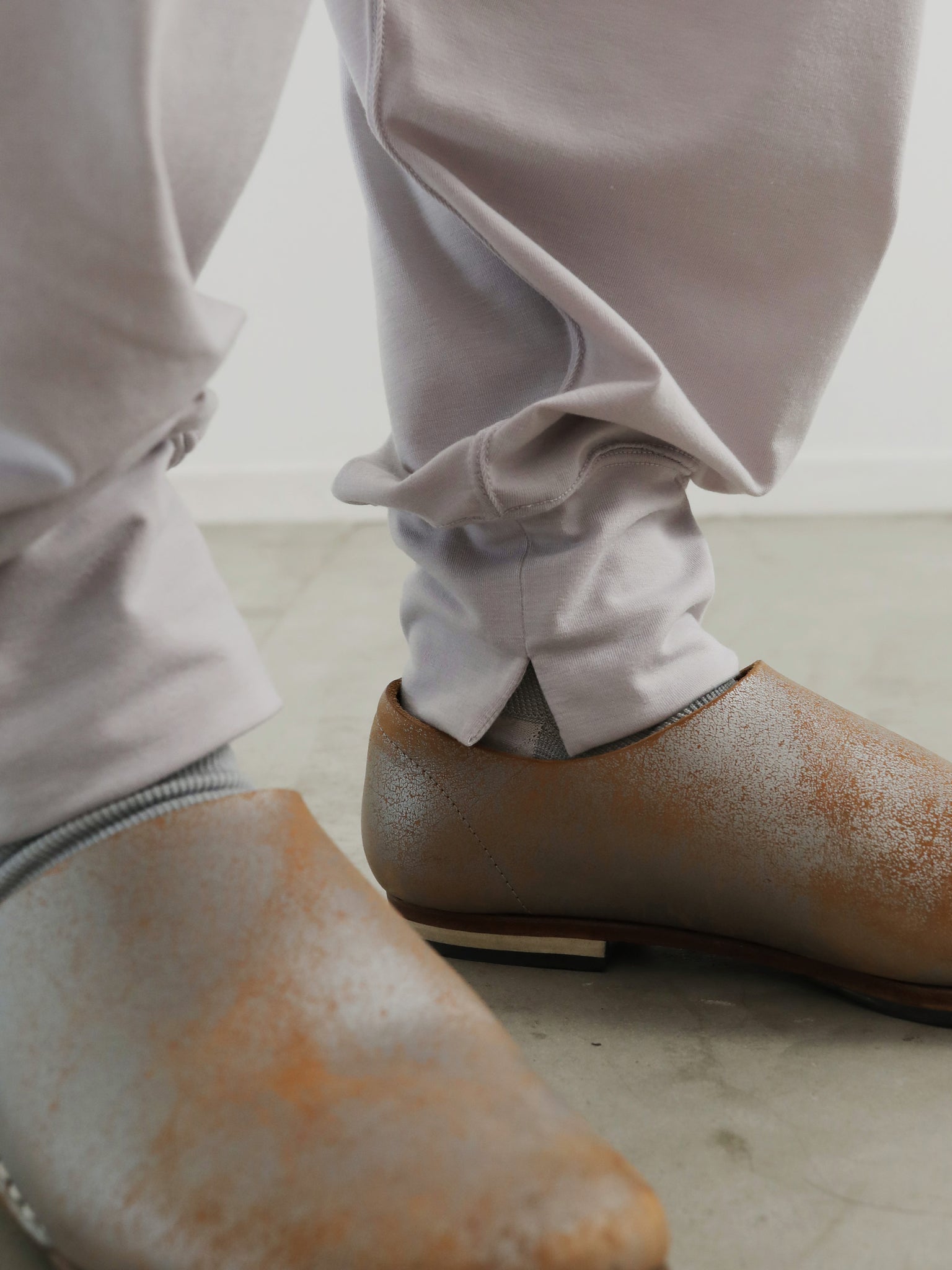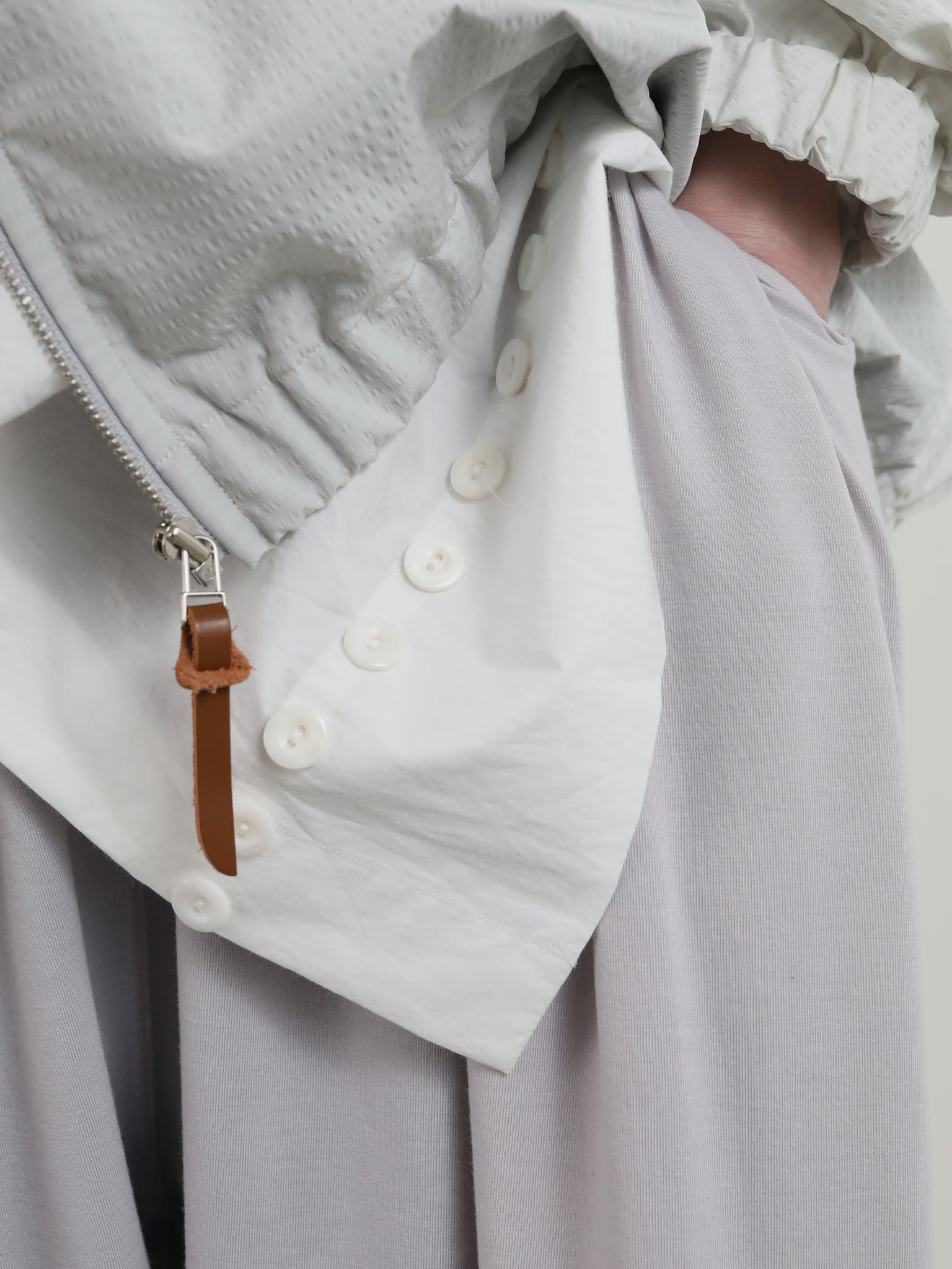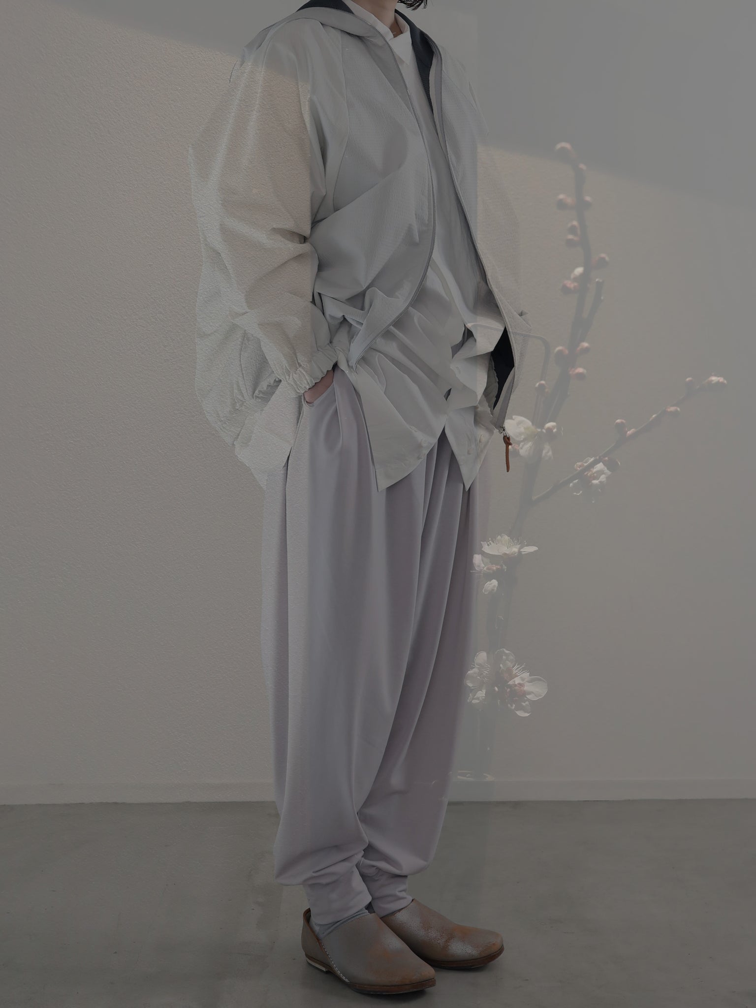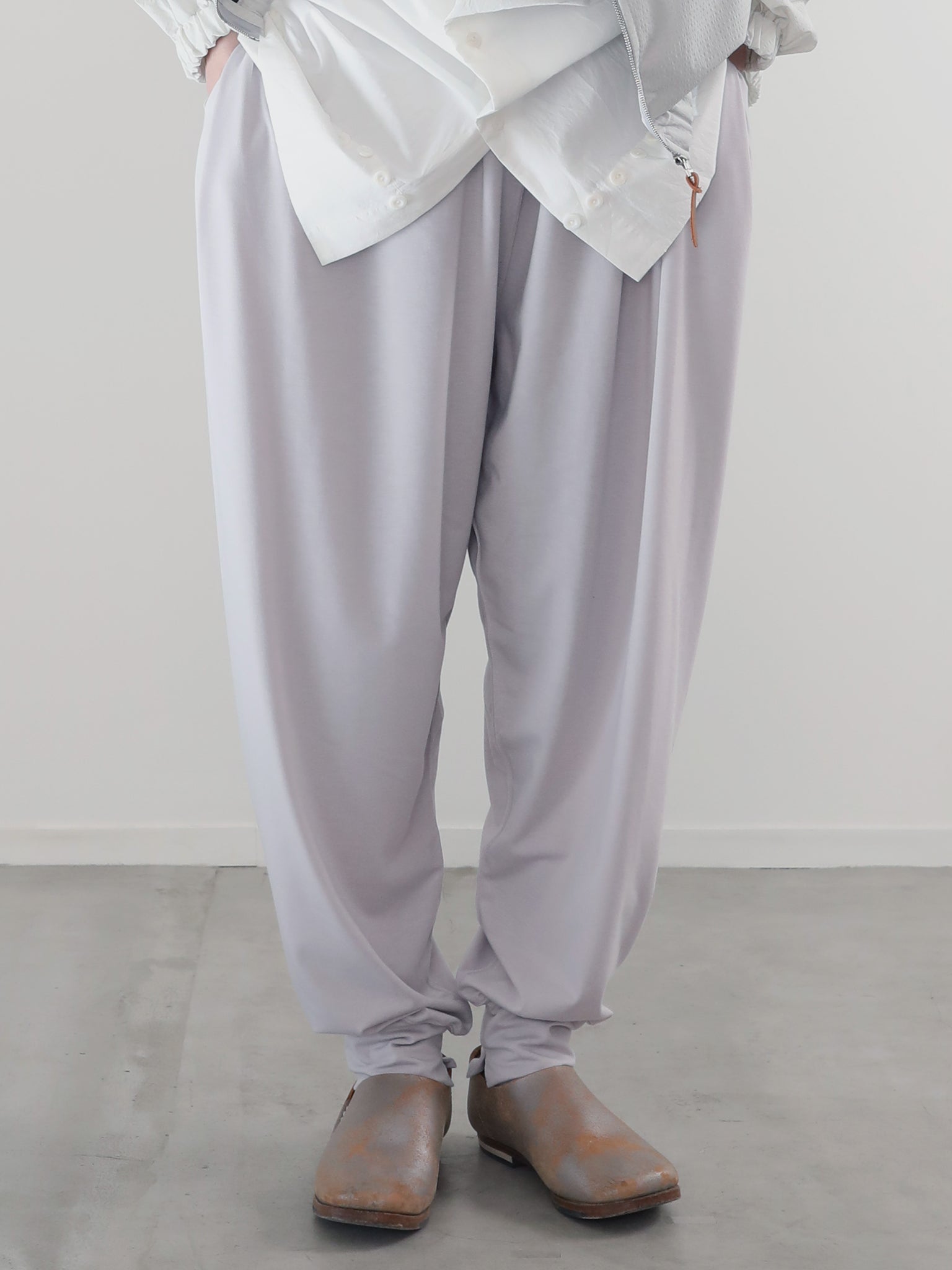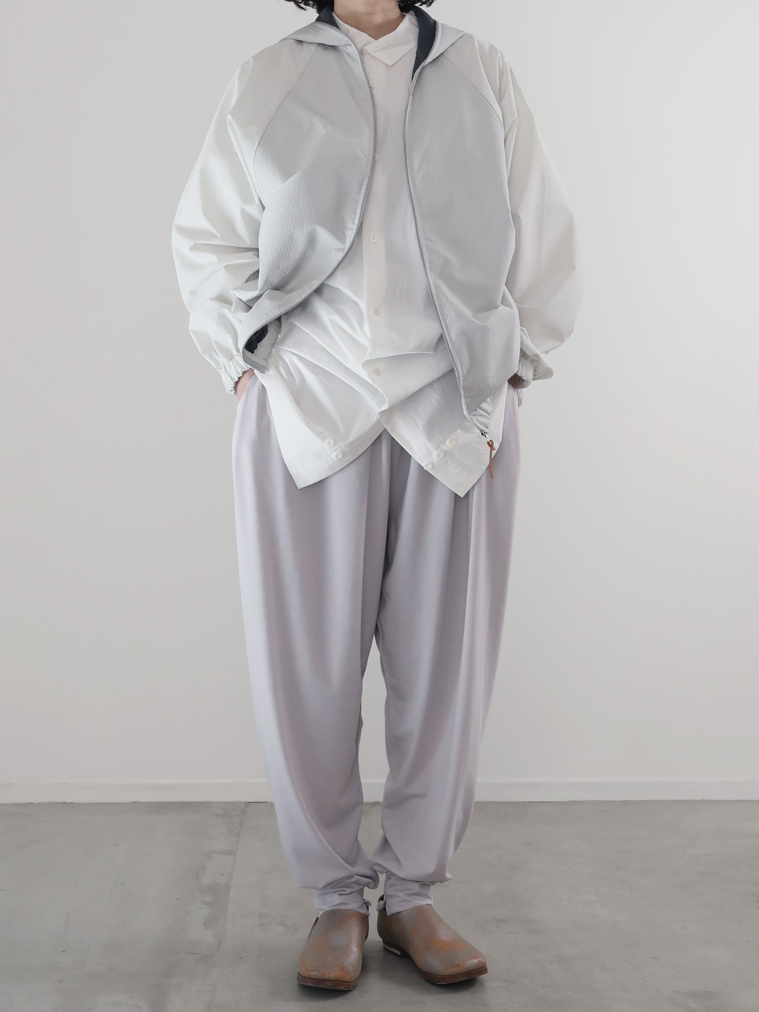 山の家やアトリエなど屋内で過ごす事が多くなった中で、リラックスを感じる素材を求める中で、、、本来はジョギングのスパッツやヨガなど、しなやかな動きを妨げないように開発されたであろうストレッチ性抜群の POLARTEC® Delta™ に注目。それをカタチとカッティングで屋内でも屋外でも楽しめる “お洒落くつろぎ着” に変換してみました。